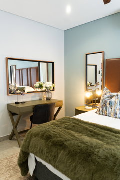 Soft, calming tones and an airy ambiance create a soothing retreat, perfect for unwinding after a day of coastal exploration.
