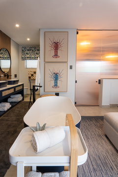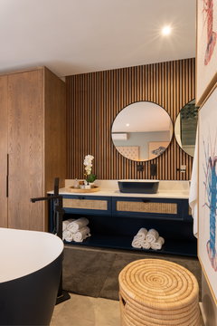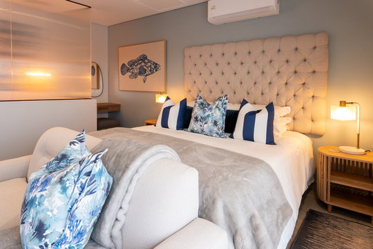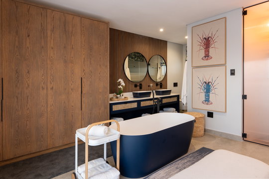 As the main bedroom at Ocean’s Grace, Room 6 offers an elevated sense of space, comfort, and quiet sophistication. The room features a luxurious king-size bed and a beautifully appointed en-suite bathroom complete with both a bath and shower, creating a perfect setting for relaxation