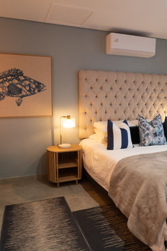 Air conditioning and a ceiling fan ensure year-round comfort, while sliding doors open onto a private veranda where guests can unwind and take in the peaceful surroundings—an ideal retreat for moments of calm and reflection.