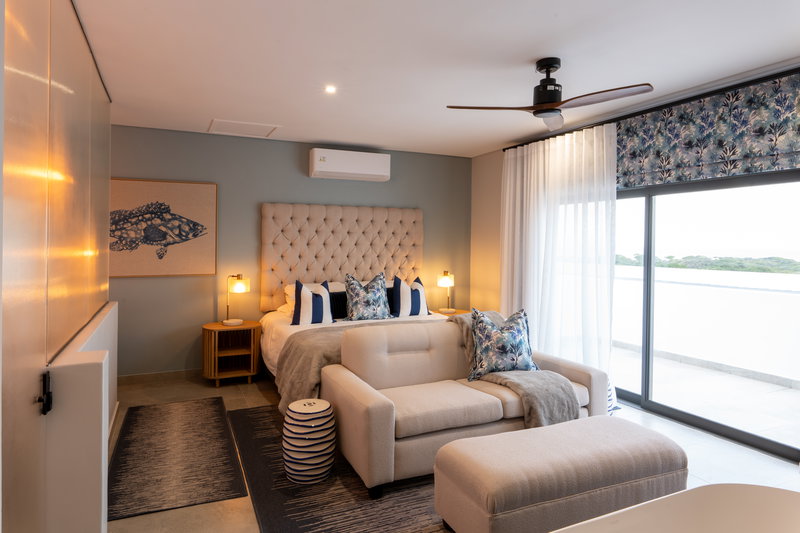 Air conditioning and a ceiling fan ensure year-round comfort, while sliding doors open onto a private veranda where guests can unwind and take in the peaceful surroundings—an ideal retreat for moments of calm and reflection.